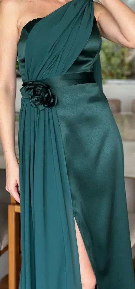 O ponto forte do decote de um ombro só é a valorização do colo, pescoço e ombro, tornando o look ainda mais sofisticado — ideal para quem deseja brilhar com classe. Para harmonizar, aposte em acessórios discretos.