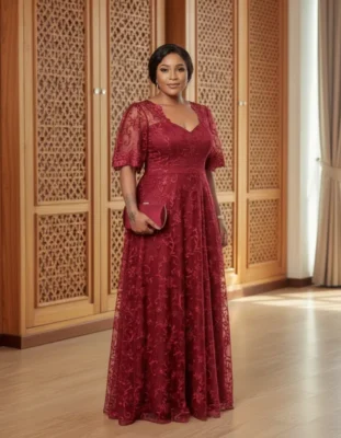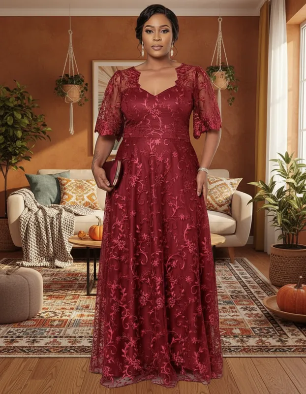 Vestido Bordado Longo Marsala Plus Size de Festa