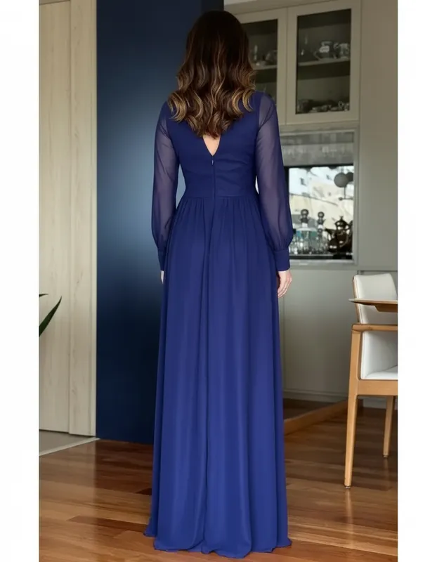 O Vestido de Festa Clássico Azul Marinho é a combinação perfeita entre tendência e elegância atemporal.
