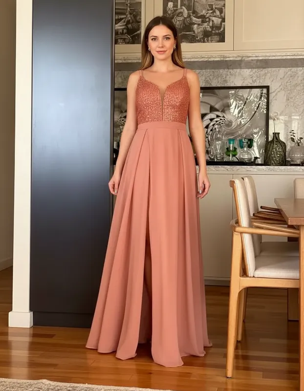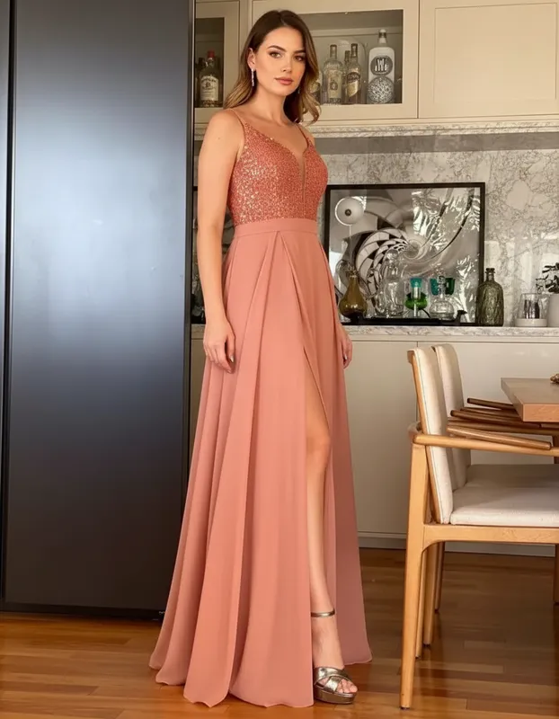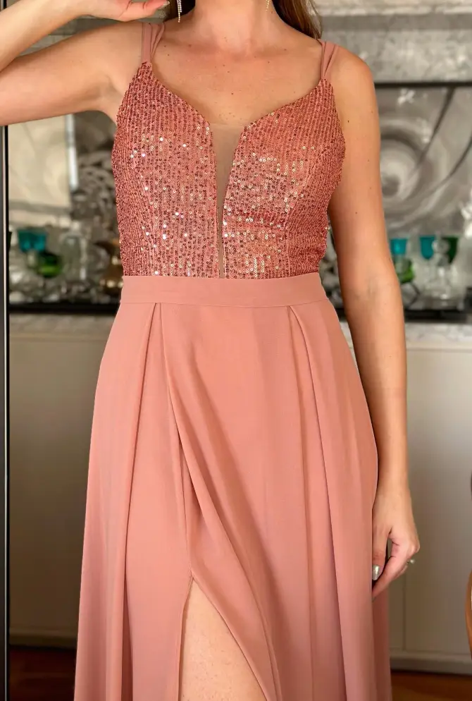 O Vestido de Festa com Paetês é pura sofisticação e encanto.