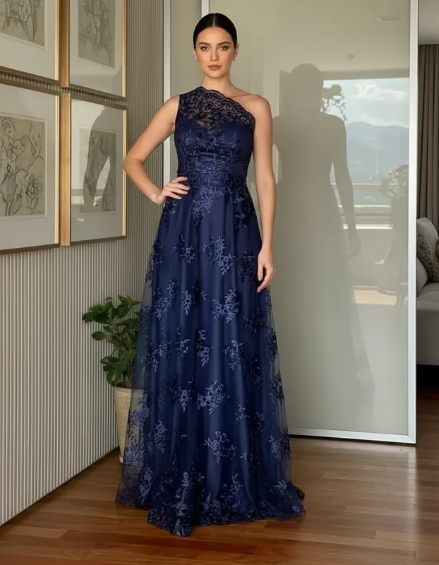 Vestido de Festa Diamante de Gala Azul Marinho – Ideal para Mães de Noiva(o), Madrinhas e Formandas