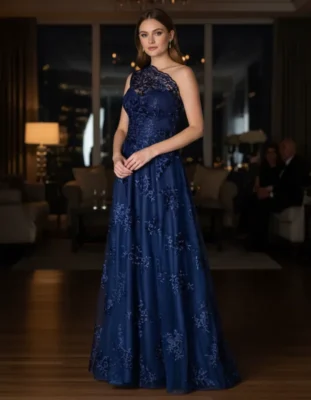 Vestido de Festa Diamante de Gala Azul Marinho – Ideal para Mães de Noiva(o), Madrinhas e Formandas