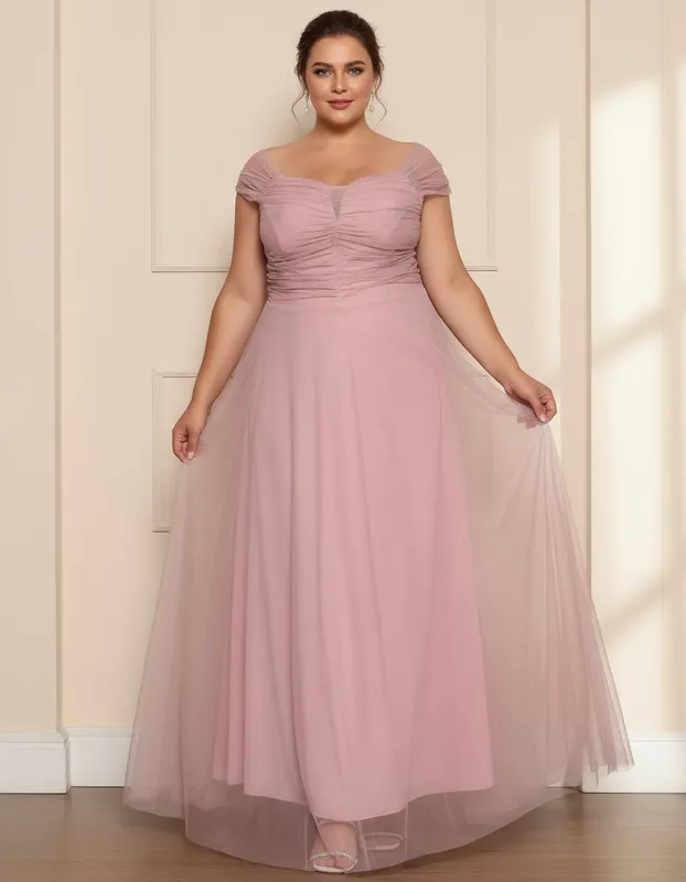 🌸 Vestido de Festa Plus Size em Tule Rosé