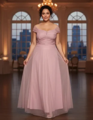 O Vestido de Festa Plus Size em Tule Rosé é puro encanto e sofisticação.