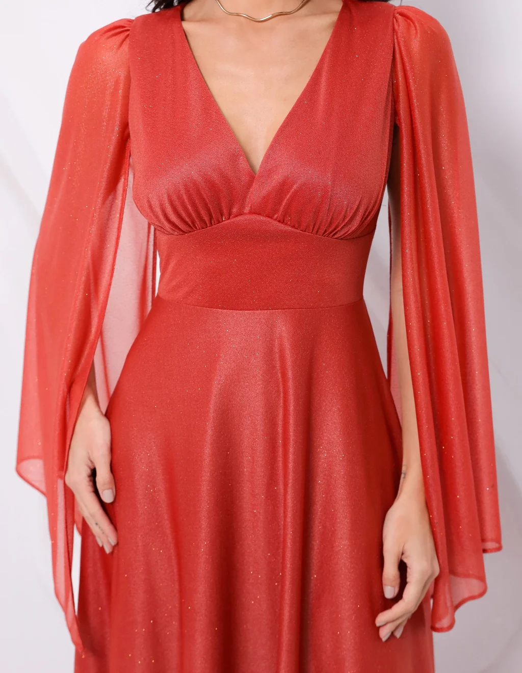 Vestido de Festa Brilhante Mangas Fluidas