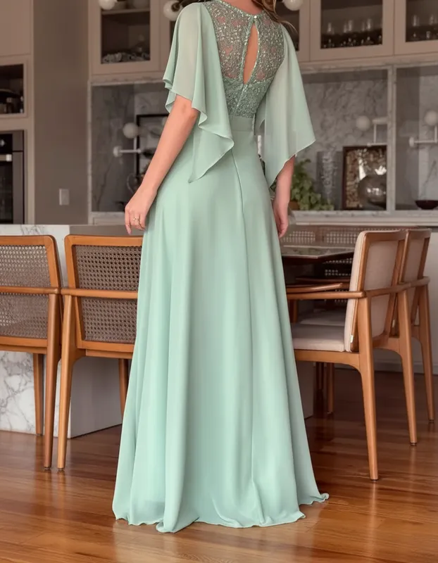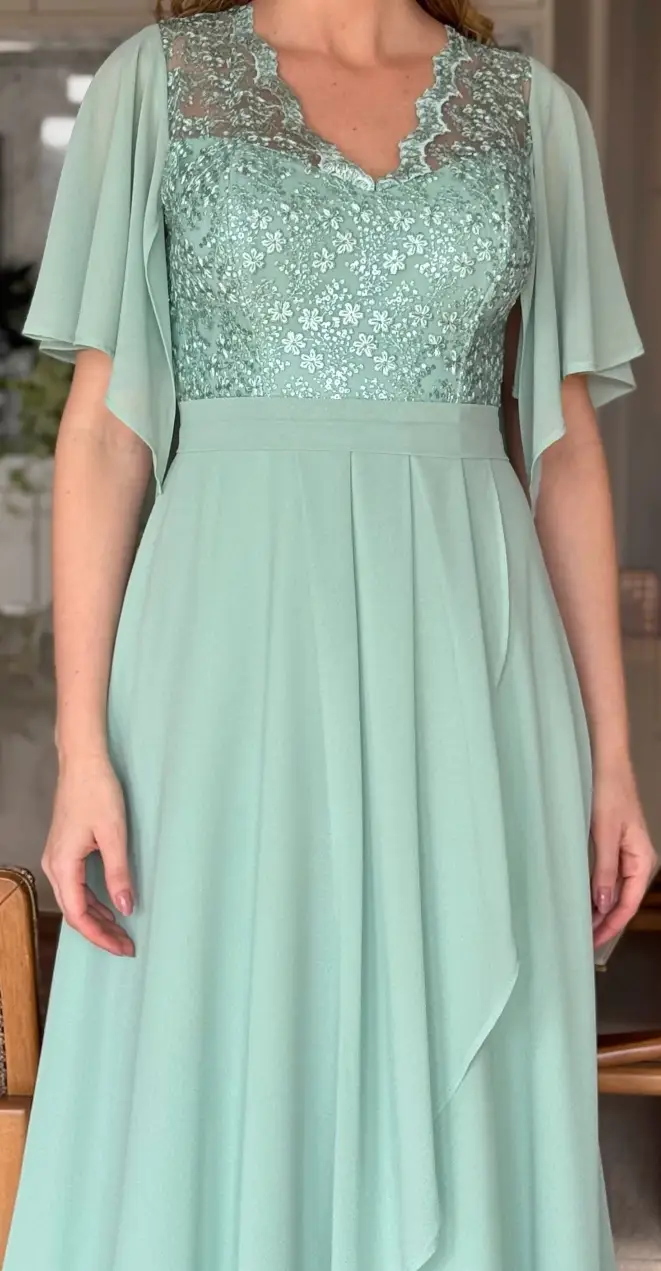 O vestido de festa verde menta em chiffon é uma peça clássica, romântica e extremamente elegante. Confeccionado em um tecido leve e fluido, ele proporciona movimento, conforto e sofisticação em qualquer ocasião especial. Sua modelagem traduz delicadeza sem abrir mão do estilo, sendo ideal para quem deseja um visual refinado e atemporal.