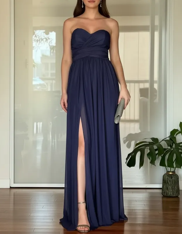 O Vestido em Tule e Fenda Azul Marinho é aquele modelo que combina versatilidade, elegância e custo-benefício.
