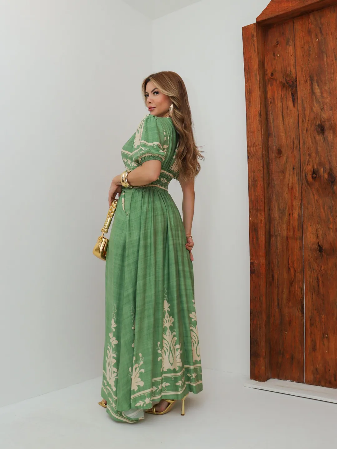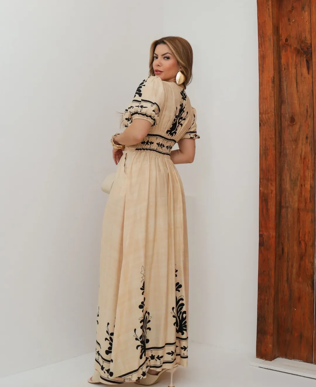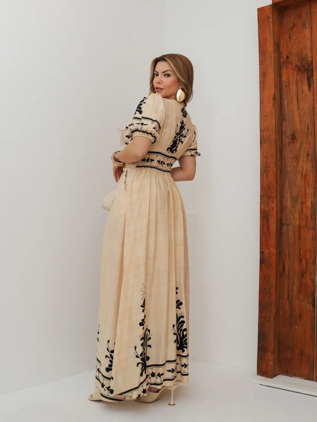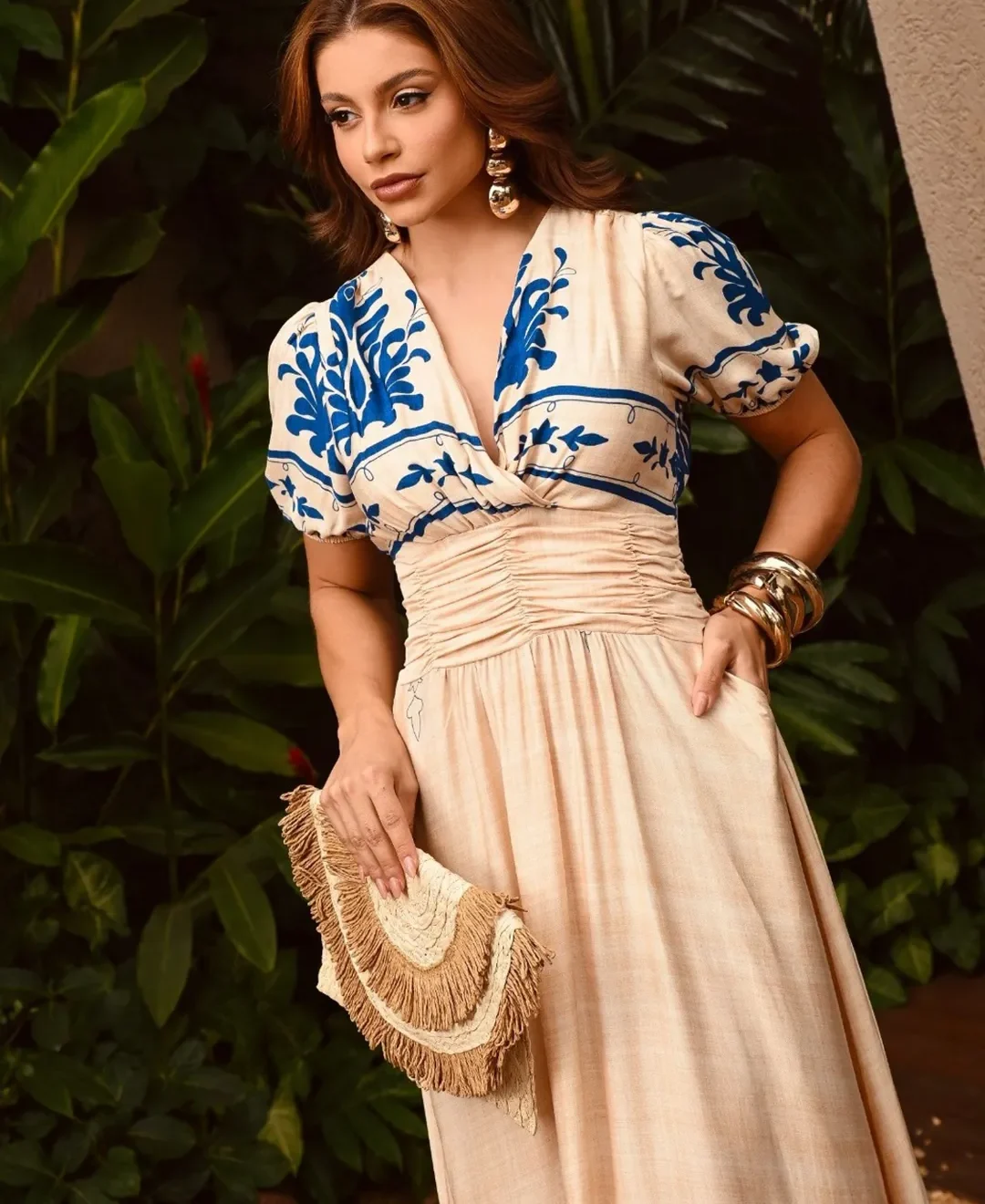 Vestido La Bohème – Elegância Longa com Drapeado e Estampa Exclusiva