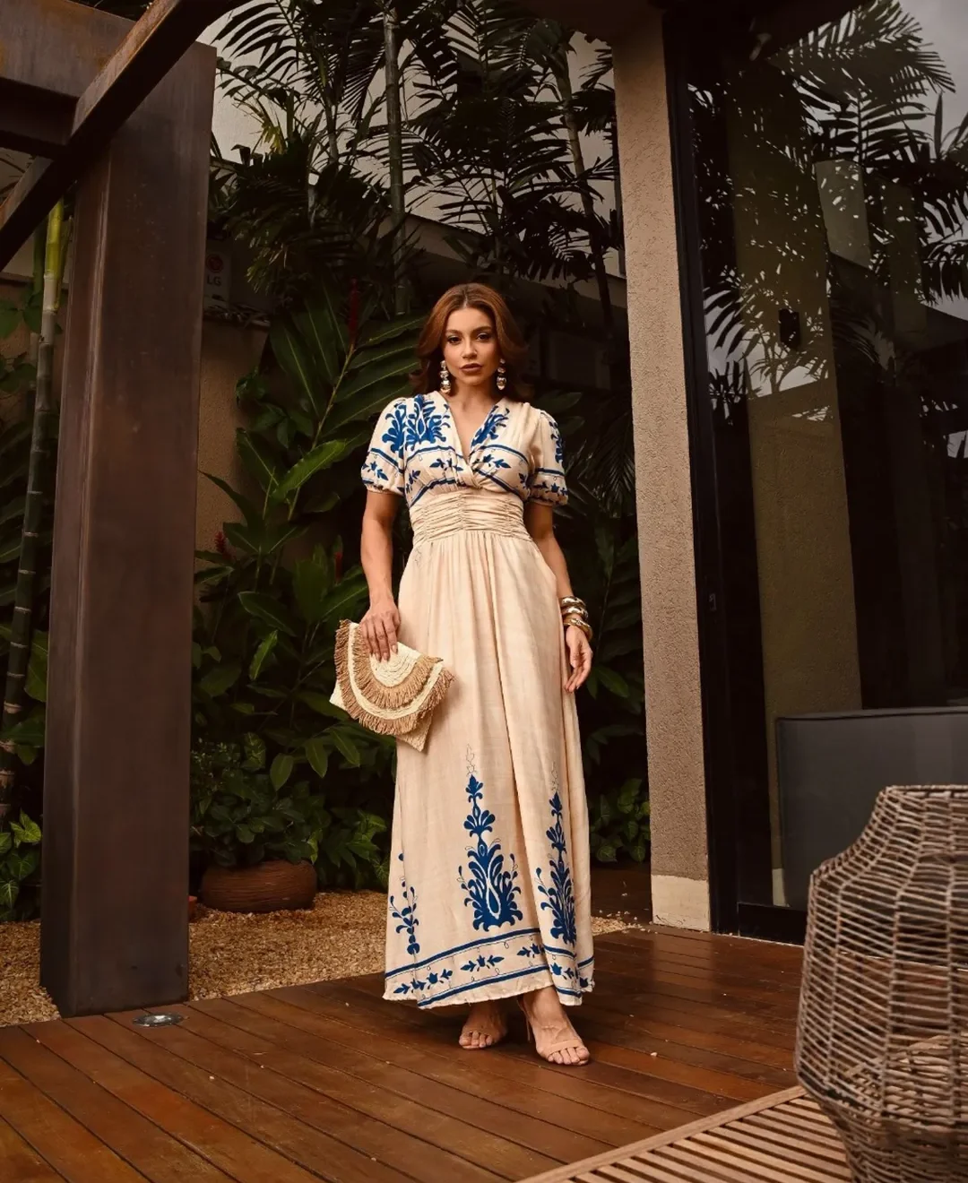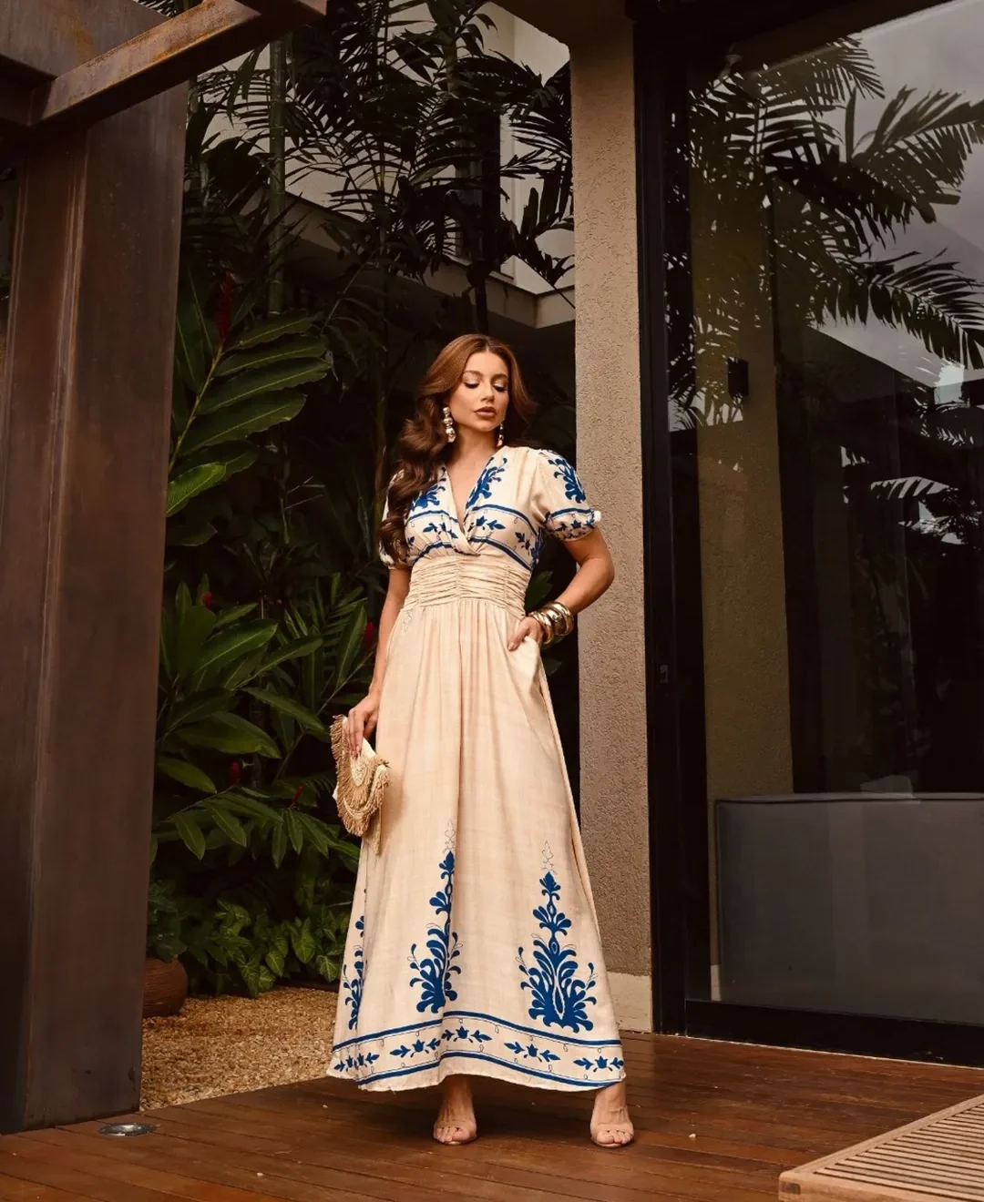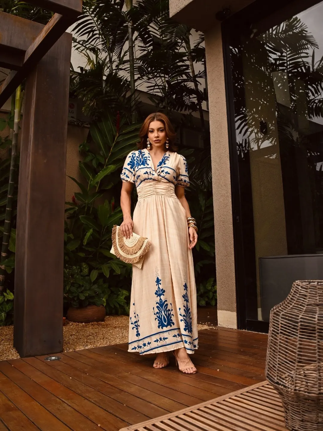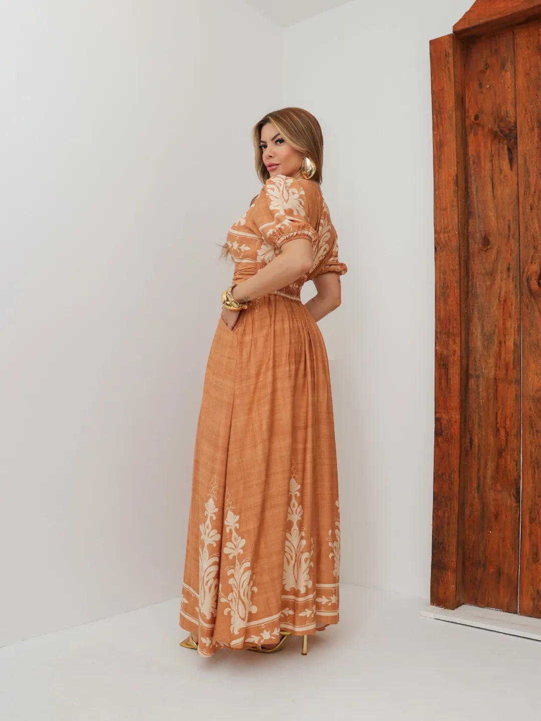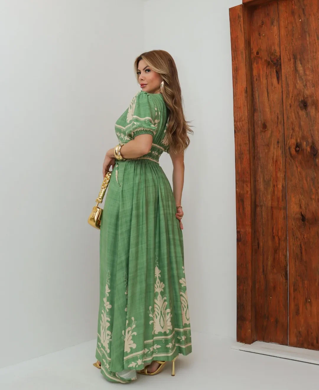 Vestido La Bohème – Elegância Longa com Drapeado e Estampa Exclusiva