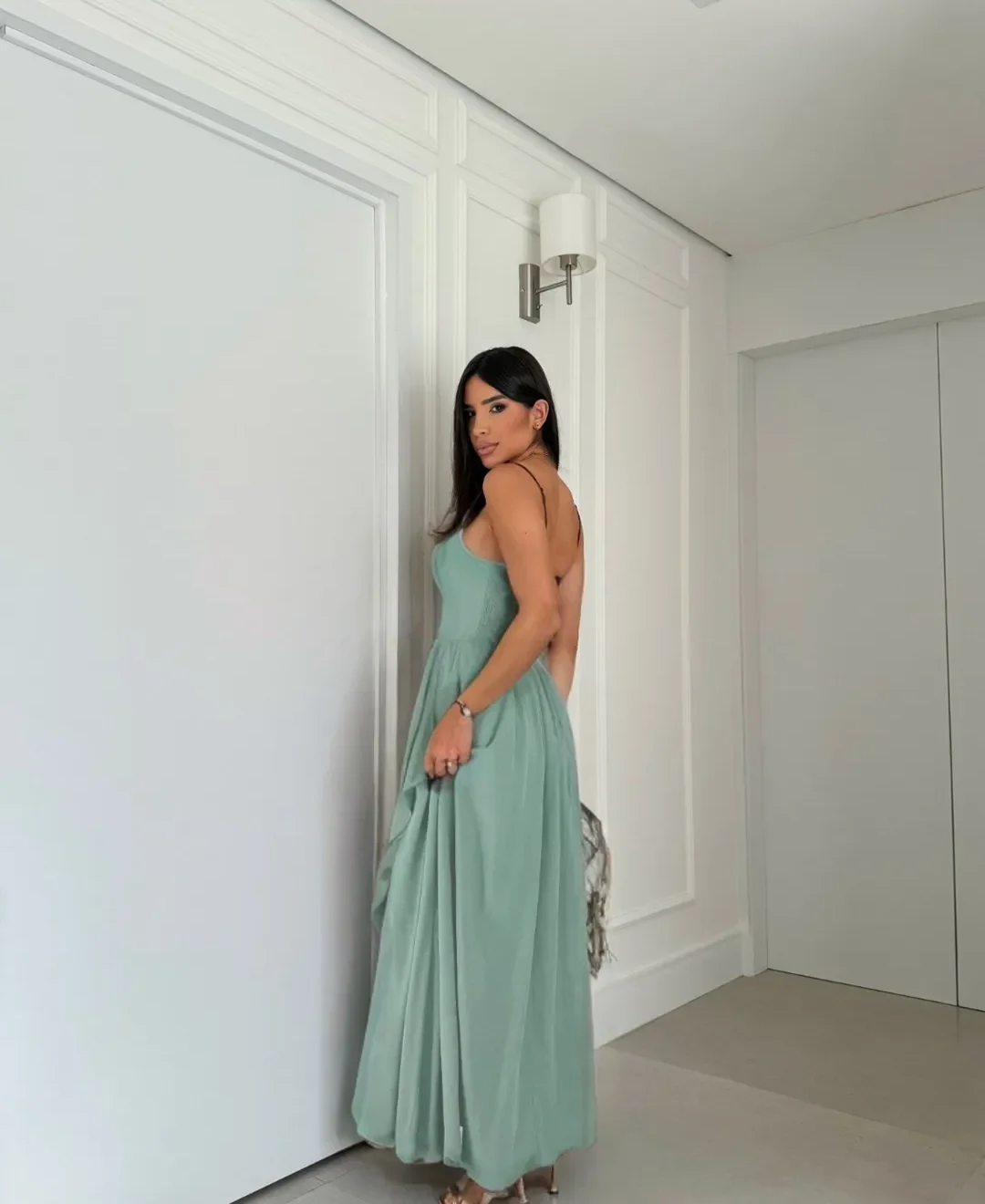 O Vestido Sereia de Festa é a escolha perfeita para mulheres que desejam arrasar em eventos especiais com elegância e sofisticação. Com corte sereia que valoriza a silhueta, babado delicado e fenda estratégica, este vestido proporciona movimento, charme e sensualidade na medida certa. O detalhe transpassado no busto ou cintura adiciona um toque moderno, deixando o look ainda mais sofisticado. Ideal para formaturas, casamentos, jantares ou festas glamourosas.